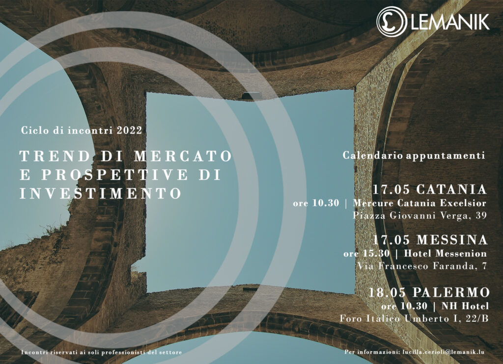 In mid-May, Lemanik’s sales team will be in Sicily for a series of meetings dedicated to discuss current market issues, the current trends and to provide some investment solutions.